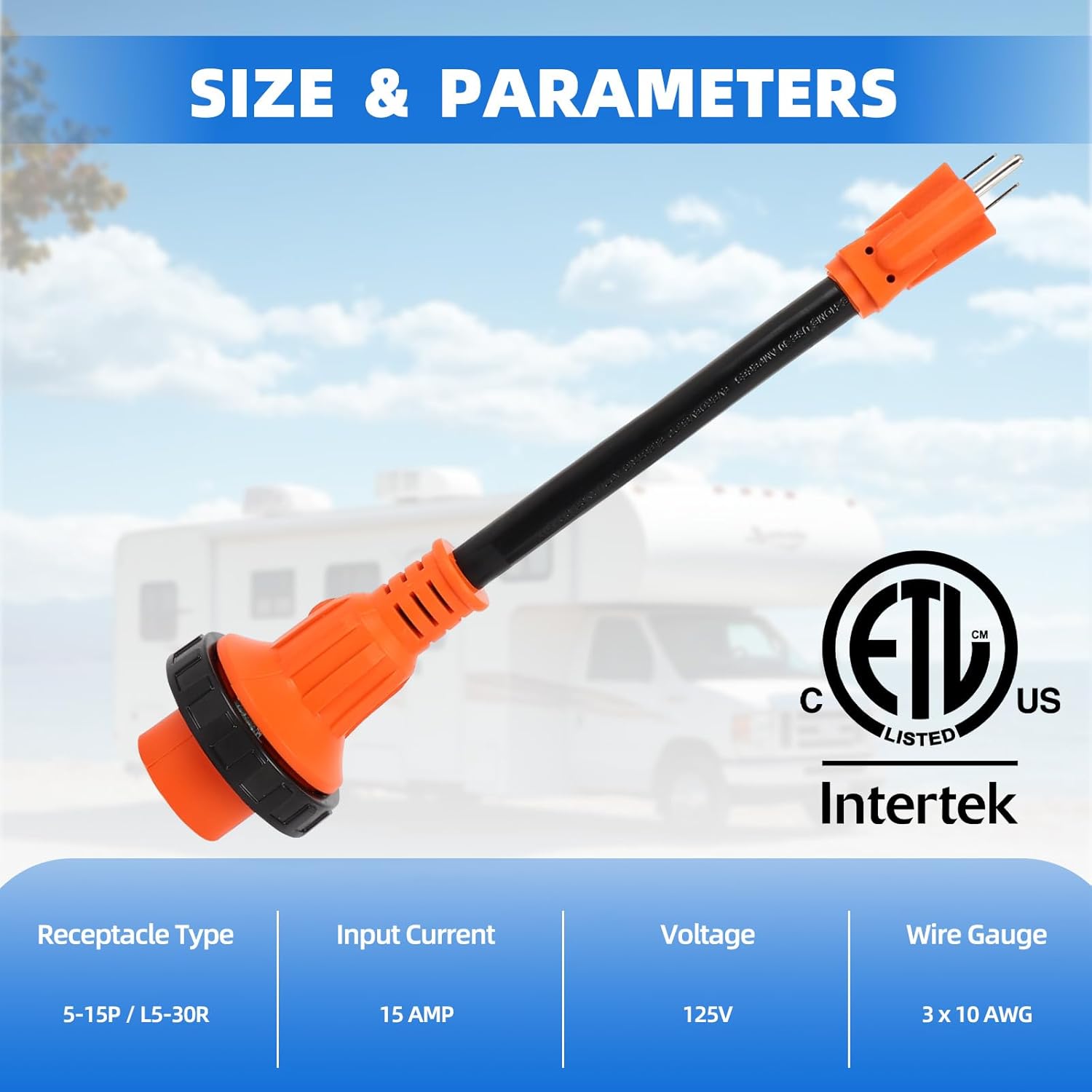 Safety is a top priority with this adapter, as it is ETL listed to ensure compliance with industry standards and regulations. Say goodbye to compatibility issues and hello to reliable power connections with the RV Power Adapter 15 Amp to 30 Amp RV Adapter. Upgrade your camping experience today!