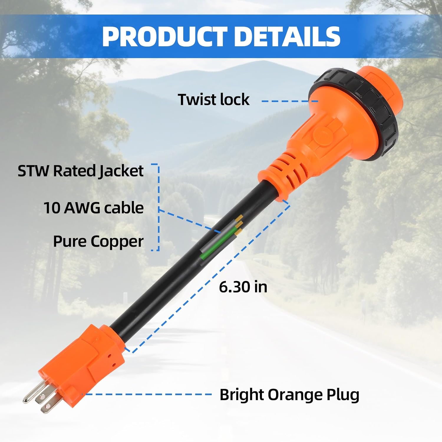 Introducing the RV Power Adapter 15 Amp to 30 Amp RV Adapter, the essential solution for all your camper electrical needs. This high-quality adapter features a NEMA 5-15P male plug to L5-30R female receptacle, allowing you to easily convert a 15 amp power source to a 30 amp power source with ease.